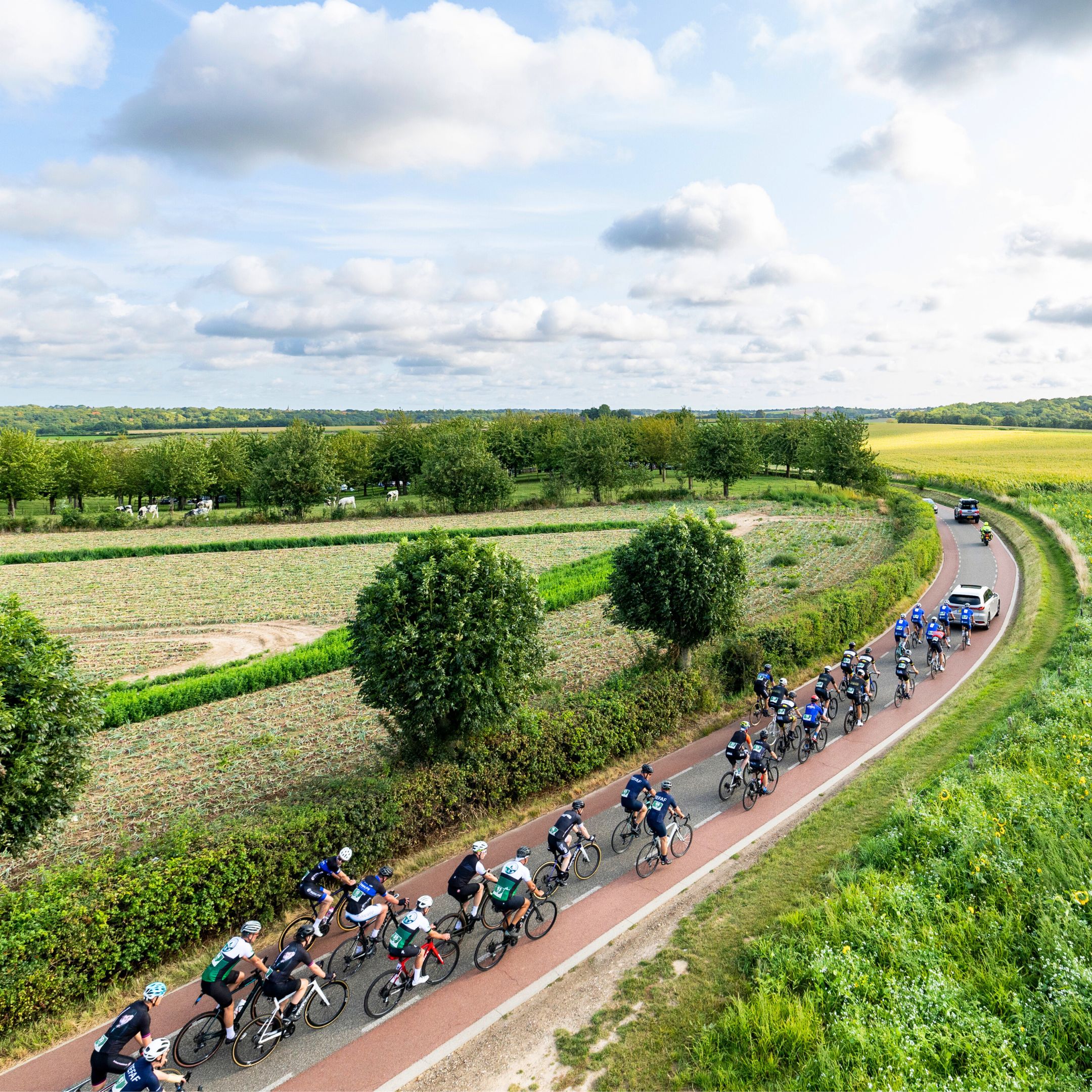 De Chasse Patate is een exclusieve, eendaagse charitatieve wielertocht waarin sport, beleving en maatschappelijke betrokkenheid samenkomen. Samen met ongeveer twintig teams en in totaal zo’n 100 deelnemers fiets je voor vier goede doelen door het prachtige Zuid-Limburgse landschap.